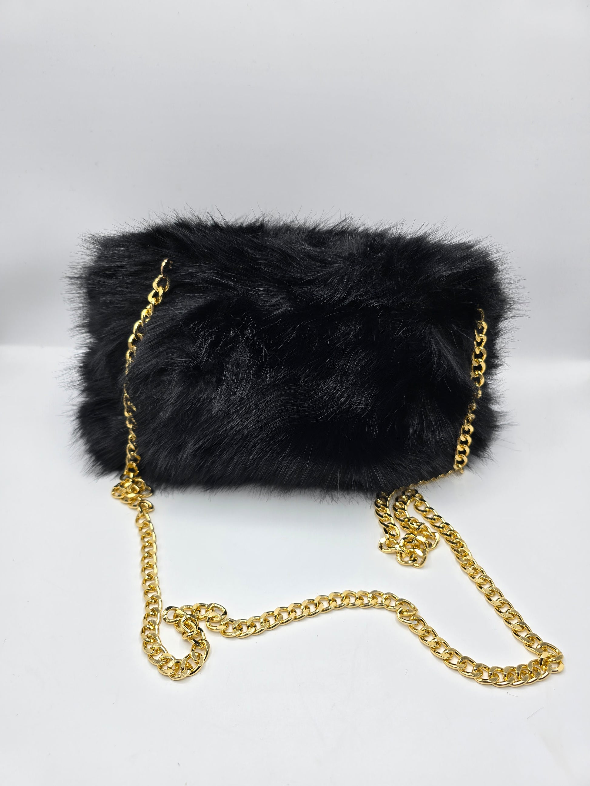 Aggiungi un tocco di lusso e classe al tuo look con la Borsa Pelliccia nera. La catena in oro aggiunge un'ulteriore eleganza, mentre le sue dimensioni di 29x20x12 la rendono perfetta per tutti i tuoi essenziali. Elegante e funzionale, questa borsa trasformerà ogni outfit in un look sofisticato.